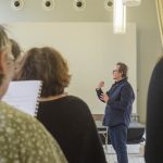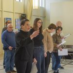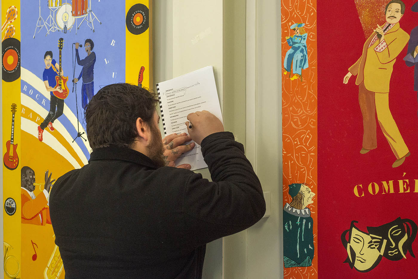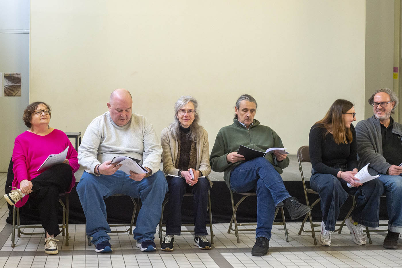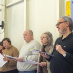 76, Porte en bois une création théâtrale de Guillo & Cie d’après le texte de Jean Vangeebergen, adaptée pour 15 comédiens et 3 musiciens. Les ateliers de création théâtrale sont encadrés par Madeline Fortumeau sous la direction d’Alain Guillo.